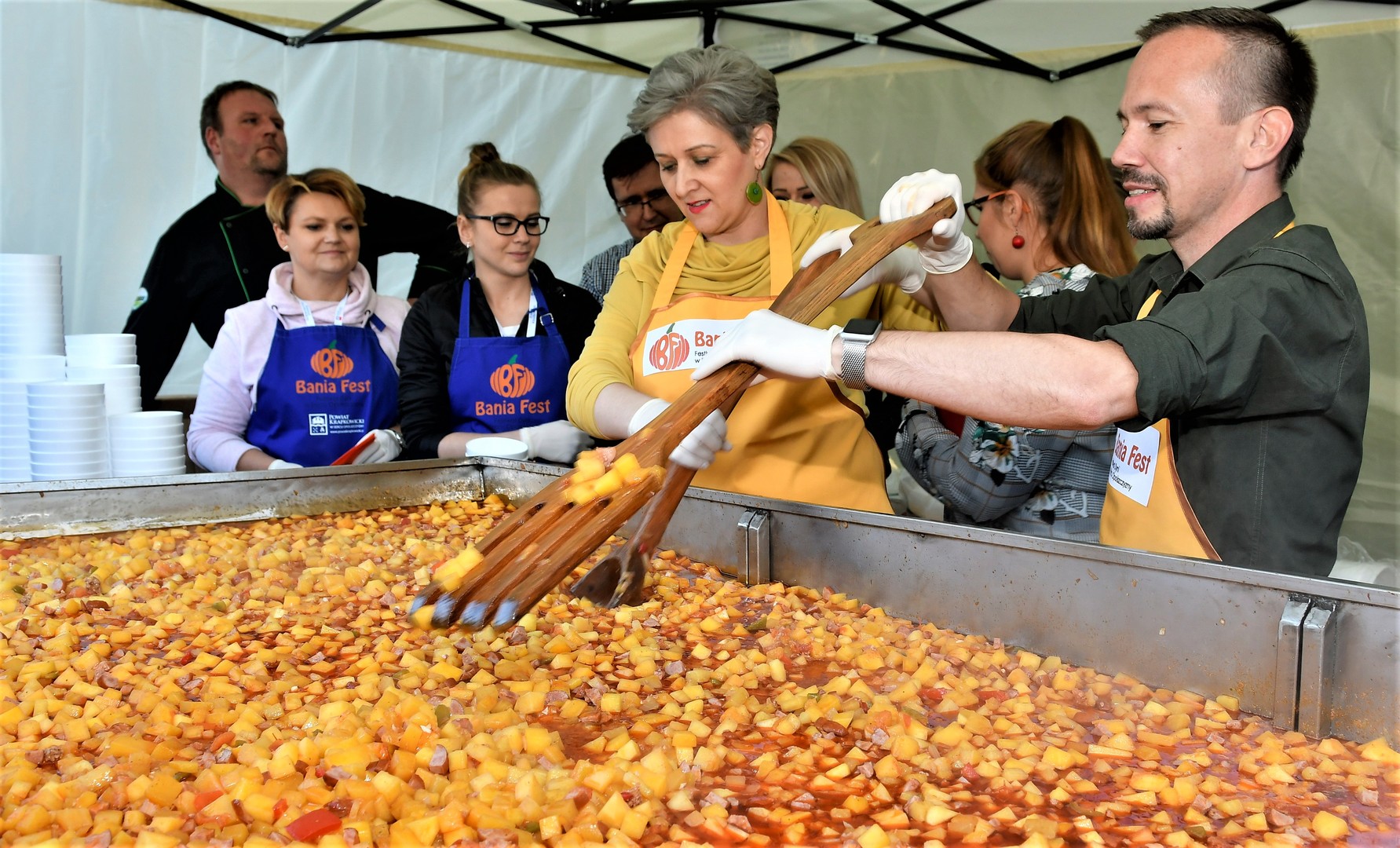 Niektórzy w kuchni kierują się zasadą - ma być smacznie jak u mamy. Żeby tak jednak było, potrzebne są przepisy, z których potraw smak tak utkwił w dziecięcej pamięci wielu z nas. Na szczęście w powiecie krapkowickim panie ze Związku Śląskich Kobiet Wiejskich wszystkie skrupulatnie zachowują, a kiedy trzeba chętnie się nimi dzielą. Między innymi dzięki temu udało się przywrócić wiele zapomnianych receptur, których dynia stanowi główny składnik. W przeciągu raptem kilku lat pomarańczowe warzywo znów zasiadło na kulinarnym tronie, a każda kolejna edycja edycja Festiwalu Dyni dostarcza nie tylko wspaniałych rekordów, ale też wiele nowych pomysłów. Dzięki temu powstają kolejne przepisy, z użyciem nowych składników i pewnie za kilka lat niejeden będzie z rozrzewnieniem o nich wspominał. Wtedy wystarczy, że odwiedzi tę stronę i znajdzie na niej wszystko czego szuka, aby przygotować zarówno smaczny obiad jak i prawdziwą ucztę. Proszę się też nie bać, że przepisy trudno rozszyfrować. Wszystkie są stworzone tak, aby swą kulinarną przygodę mógł rozpocząć każdy.