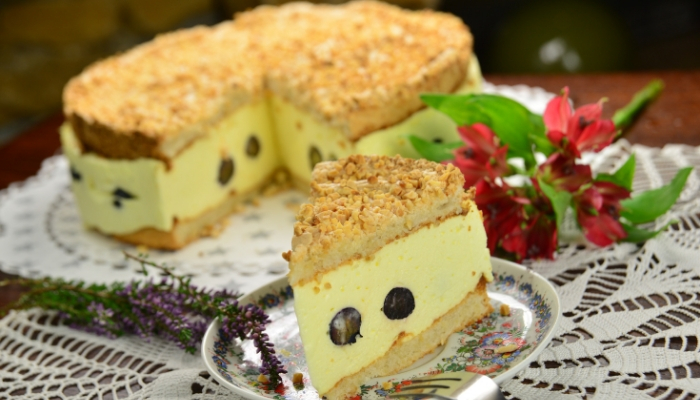 Pyszny tort z dużą ilością orzechów i sezonowych owoców. Idealnie sprawdzi się zarówno na tradycyjnych uroczystościach rodzinnych, jak i mniej formalnych imprezach.